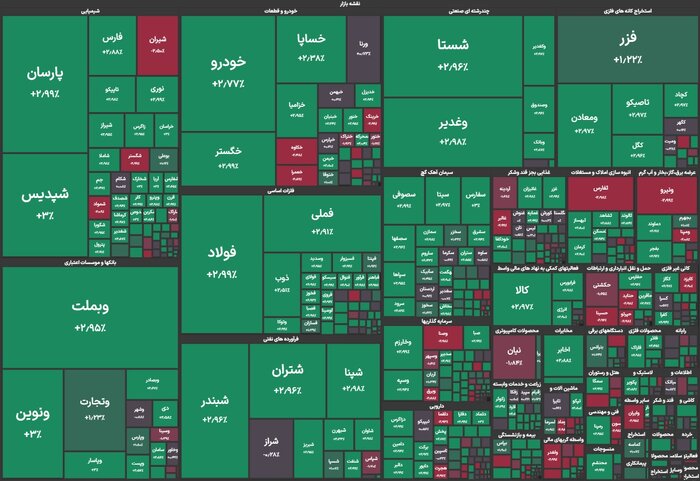 شاخص کل بورس تهران در پایان معاملات یکشنبه ۱۳ مهر با رشد بیش از ۶۰ هزار واحدی به ۲ میلیون و ۸۵۴ هزار واحد رسید. شاخص هموزن نیز رشد ۹۴۰۶ واحدی داشت و به تراز ۸۲۶ هزار واحد دست یافت. نمادهای فارس و فملی در مجموع بیش از ۱۴ هزار واحد در رشد شاخص مؤثر بودند.