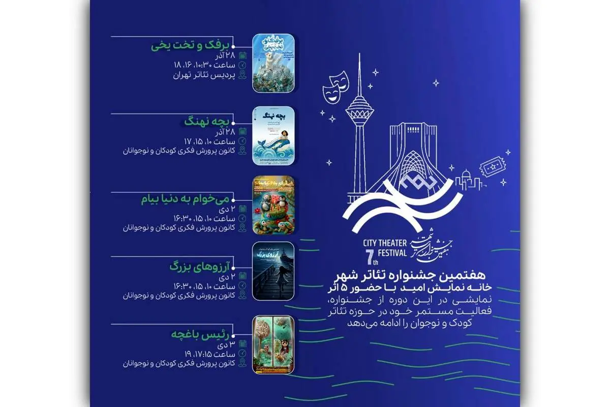 همزمان با برگزاری هفتمین جشنواره تئاتر «شهر»، مؤسسه فرهنگی هنری سوره امید با پنج اثر نمایشی ویژه کودک و نوجوان در این رویداد هنری حضور دارد.