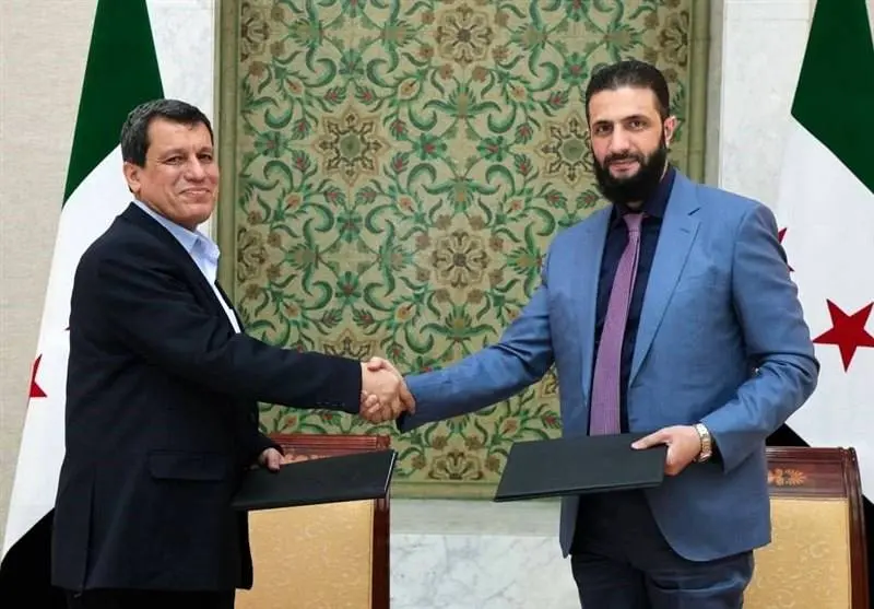 قسد افزود: بر اساس توافق در مورد فرآیند ادغام مرحله‌ای نیروهای نظامی و اداری با دولت سوریه به تفاهم رسیده‌ایم.