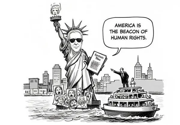 روزنامه خلق چین با انتشار کاریکاتوری درباره رسوایی هولناک پرونده جفری اپستین جنایتکار جنسی، او را در شمایل «مجسمه آزادی» به تصویر کشیده و نوشته است: ایالات متحده همواره خود را بهعنوان رهبر اخلاقی با «سوابق بینقص حقوق بشر» معرفی کرده و از این عنوان برای انتقاد از دیگر کشورها استفاده میکند.