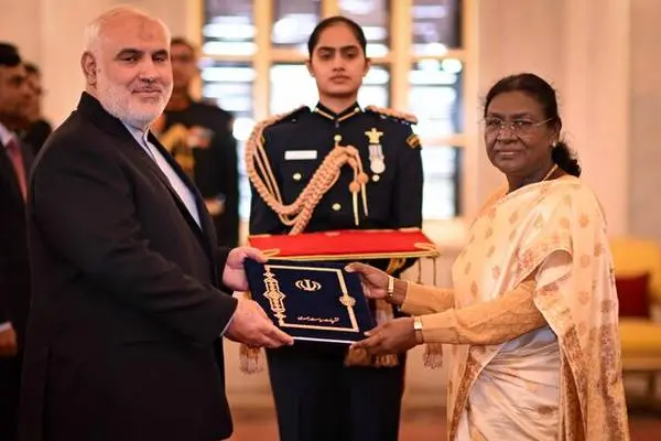 سفیر ایران در هند استوارنامه خود را به «دروپادی مورمو» رئیسجمهور هند تقدیم کرد.