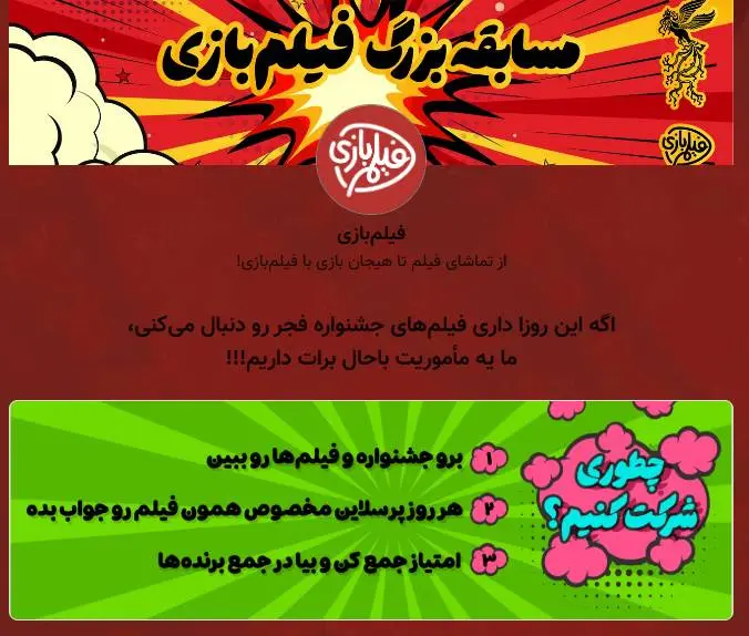 گفتنی است برای شرکت در این مسابقه به لینک https://zil.ink/filmbaazi.ir مراجعه کنید.