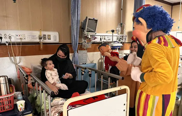 هنرمندان مرکز تئاتر کانون در کنار کودکان بیمارستان شهید رجایی