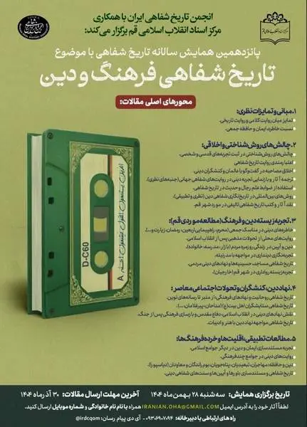 انجمن تاریخ شفاهی ایران با همکاری مرکز اسناد انقلاب اسلامی قم، پانزدهمین همایش سالانه تاریخ شفاهی را با موضوع تاریخ شفاهی فرهنگ و دین برگزار می‌کند.